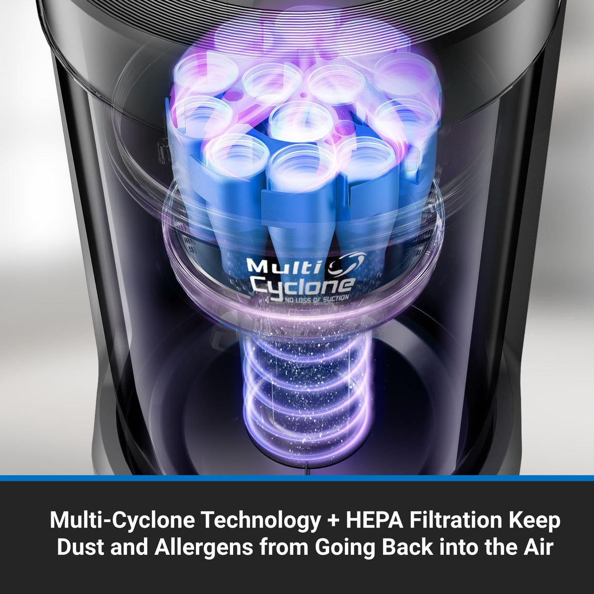 • Multi-Cyclone Technology captures fine dust and allergens for cleaner indoor air.