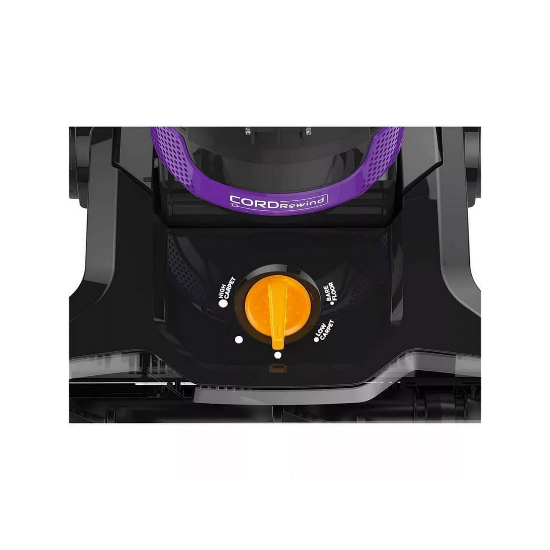 The Eureka NEU203 PowerSpeed Multi-Surface Upright Vacuum Cleaner in Purple is built for powerful, efficient cleaning across all floor types. Its lightweight design and 12.6-inch wide cleaning path make it easy to maneuver while covering more ground quickly. With five height adjustment settings, it adapts to carpets, hardwood, and tile with ease. The automatic cord rewind feature simplifies storage, and the XL 2.1-liter dust cup means fewer trips to the trash. LED headlights illuminate hidden debris, and the washable filter ensures low-maintenance performance. Equipped with a pet turbo brush, crevice tool, dusting brush, and upholstery tool, this vacuum tackles pet hair, dust, and dirt from floor to ceiling. Ideal for busy households, it combines convenience, versatility, and strong suction in one sleek package.