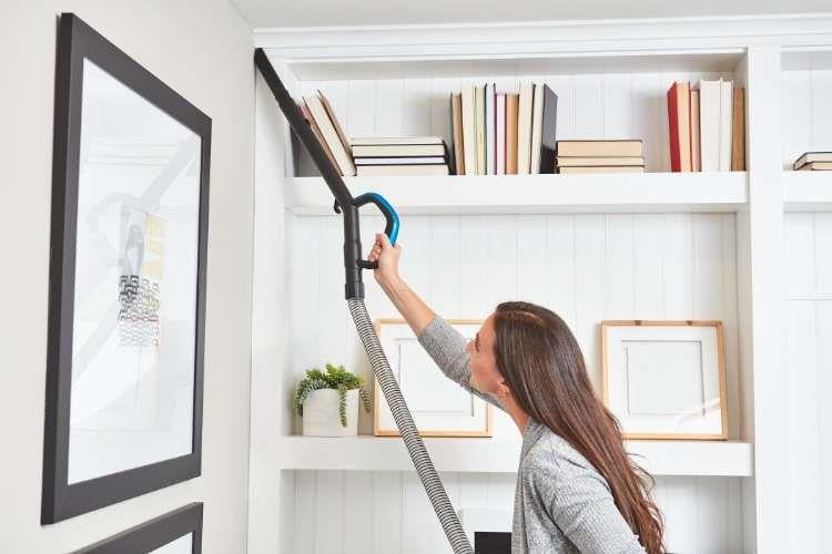 • Quick-release handle and 7.5 ft reach simplify above-floor cleaning tasks.