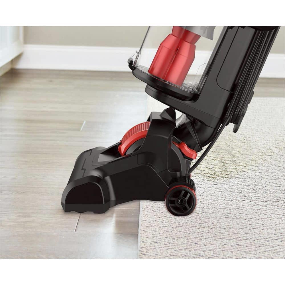 The Eureka Max Swivel NEU351 Upright Bagless Corded Vacuum in Red is engineered for powerful, efficient cleaning across multiple surfaces. Its patented 170° swivel steering offers superior maneuverability around furniture and tight corners, while the automatic height adjustment seamlessly transitions between carpets and hard floors. The dual cyclone filtration system ensures consistent suction and captures fine dust and allergens without loss of power. Designed with pet owners in mind, it includes a Pet Turbo Tool for removing embedded hair from upholstery and stairs. LED headlights illuminate hidden debris, and the quick-release handle extends reach for above-floor cleaning. With a large 1.5-liter dust cup, you can clean longer without frequent emptying. Lightweight and easy to use, the NEU351 combines deep-cleaning performance with everyday convenience.